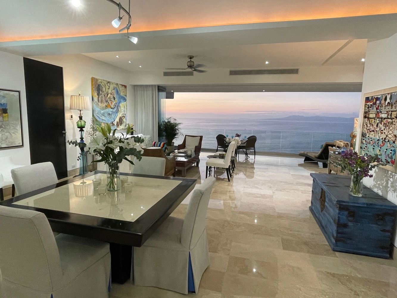 Our condo provides a WOW reaction every time you enter with unrivaled views of the Bay of Banderas, the city and of the surrounding mountains. The nighttime views are magical with sparkling city lights and nightly fireworks and can be enjoyed from the terraza or your private zero edge heated dipping pool. Frequent sightings of humpback whales occur during the winter months in the bay. This 2 bedroom, 2 bath condo with over 2,700 feet of luxurious living space embodies the best of European and Mexican contemporary design. It features a richly designed kitchen with sleek Italian cabinetry, granite countertops and a 12-foot center island. The interior is tastefully elegant yet remains a casual design aesthetic. Modern art, eclectic objects d’art and carefully chosen lighting niches will catch your eye while blending perfectly into a space that features sleek marble tiled floors throughout. The spacious bedrooms feature ample closet space, newly renovated bathrooms, with granite counters and lots of cabinet space. A rain shower and designer tub complete the primary bathroom area. Superior quality beds with new mattresses and new linens are standard.